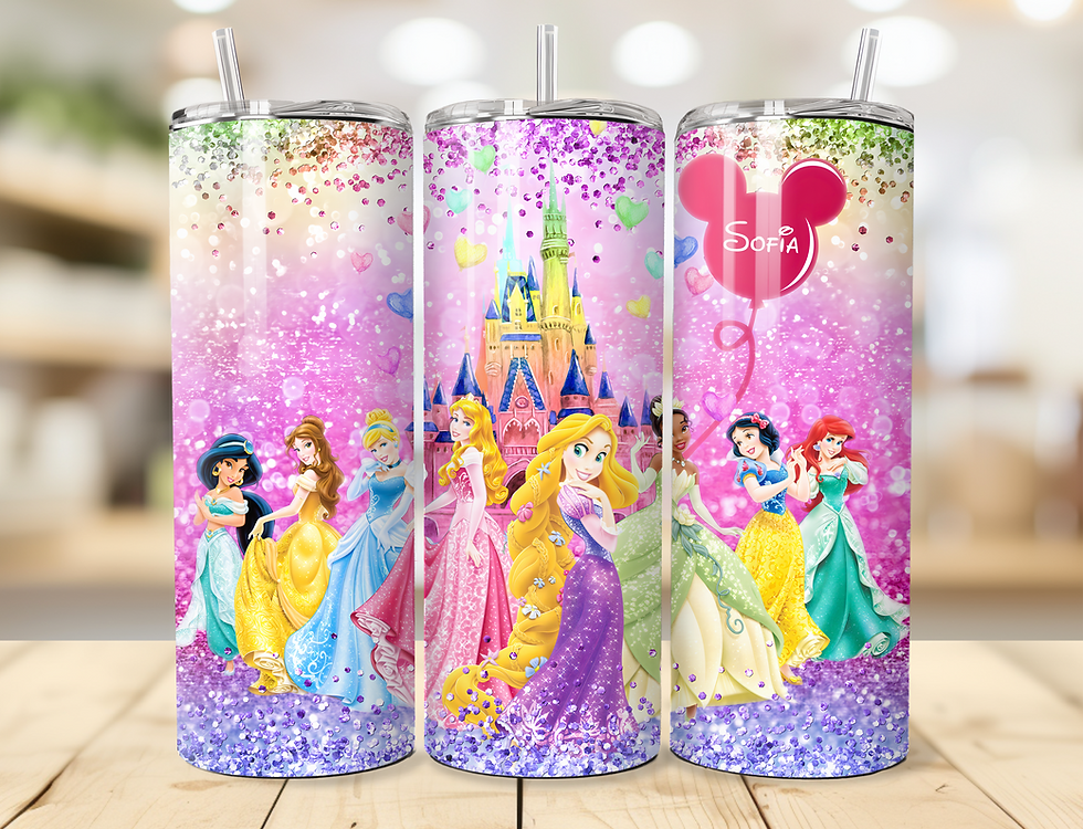 PERSONALISE 'PRINCESSES' 600ML S/STEEL GLOSSY THERMAL TUMBLER & STRAW.